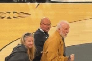波波维奇被球迷拍到现身昨日奥斯汀马刺(马刺在G联赛的下属球队)比赛现场,他的中风后遗症明显,走路需要用到拐杖同时需要人搀扶。